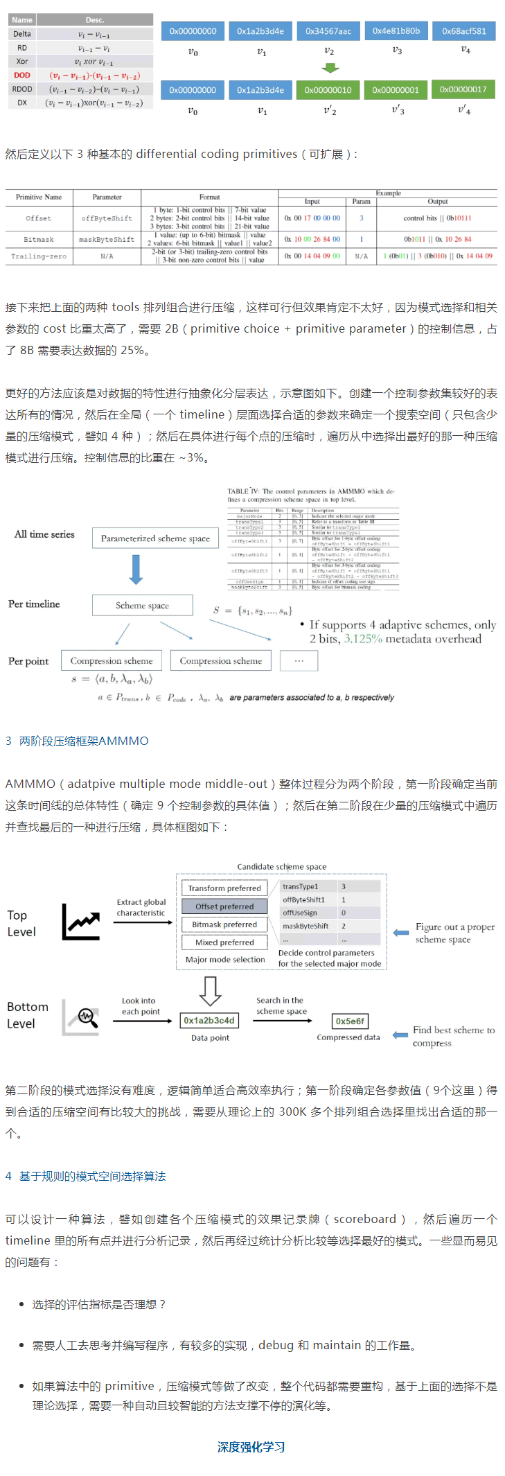 深度學(xué)習(xí)的本質(zhì)是做決策,用它解決具體的問(wèn)題時(shí)很重要的是找到契合點(diǎn),合理建模,然后整理數(shù)據(jù)優(yōu)化 loss 等終較好地解決問(wèn)題。在過(guò)去的一段時(shí)間,我們?cè)谟蒙疃葟?qiáng)化學(xué)習(xí)進(jìn)行數(shù)據(jù)壓縮上做了一些研究探索并取得了一些成績(jī),已經(jīng)在 ICDE 2020 research track 發(fā)表(Two-level Data Compression using Machine Learning in Time Series Database)并做了口頭匯報(bào)。在這里做一個(gè)整體粗略介紹,希望對(duì)其它的場(chǎng)景,至少是其它數(shù)據(jù)的壓縮等,帶來(lái)一點(diǎn)借鑒作用。
