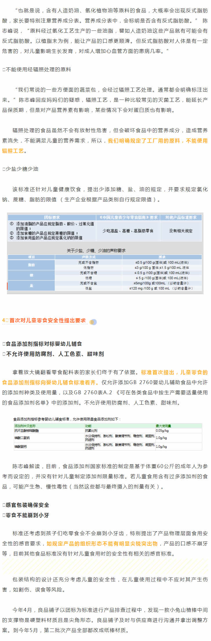 此外,這次的新標(biāo)準(zhǔn)次提出“兒童零食”的定義,區(qū)別于普通零食,兒童零食指適合3~12歲兒童食用的零食。