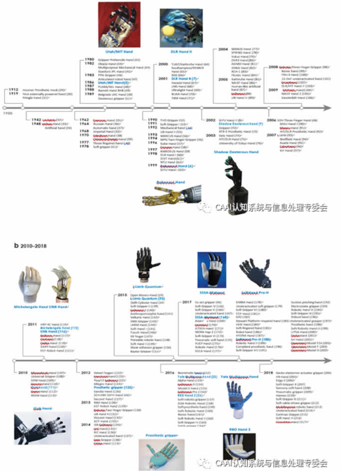 研究人員試圖通過復雜的設計來仿造人類雙手的外觀和靈活性,并集成了許多驅動器和傳感器,例如猶他/MITH、RobonautHand、DLR(Deutsches Zentrum für Luft- undRaumfahrt)Hand II、Gifu Hand II、Shadow Dexterous Hand及清華大學孫富春團隊開發的系列靈巧手等。雖然目前有很多實驗樣機,但在工業機器人、服務機器人甚至假肢方面,實際應用數量仍然有限。為了增加推廣,近年來已經提出了一些新的方法和解決方案,以開發有效和可靠的靈巧手。事實上,雖然實現了出色的結構和功能擬人化——即不僅在外觀上,而且在動作和功能上與人類的手相似(可能會過于復雜),但近年有趨勢旨在實現穩健的、易于編程的、經濟實用的靈巧手,能夠執行人手操作功能的子集。