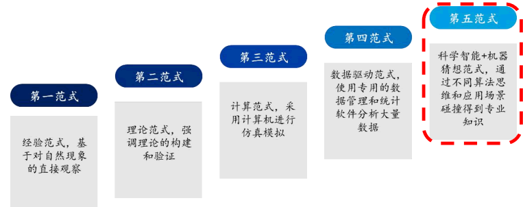 科學研究共發展出了四種主要范式,AI 技術則提供第五范式的可能。