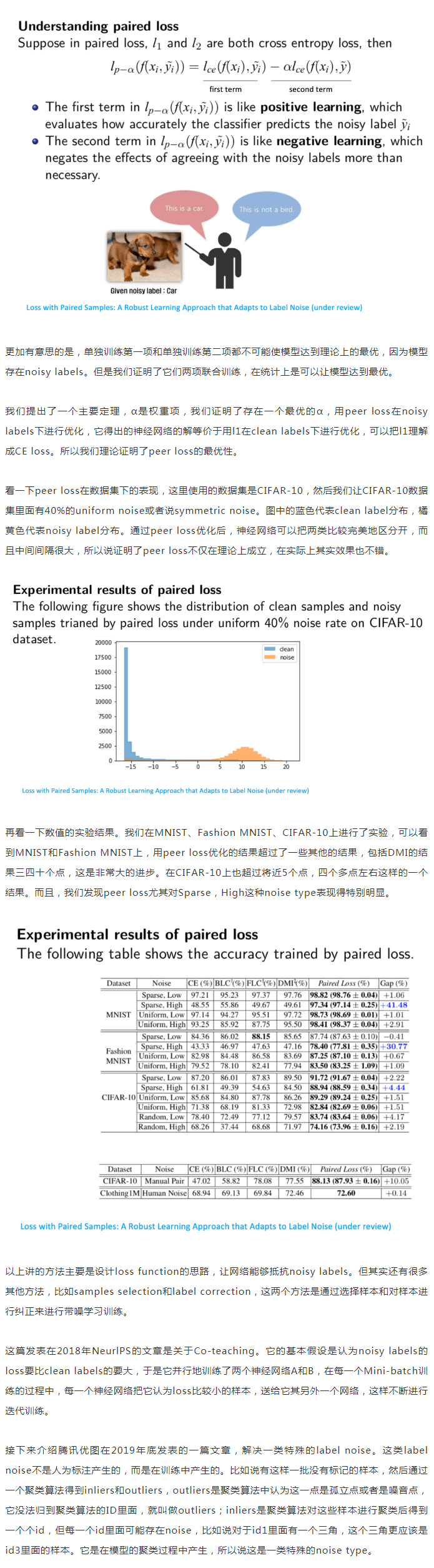 現(xiàn)實(shí)數(shù)據(jù)中存在的標(biāo)簽噪音(label noise)根據(jù)Feature可以分成兩種:Feature independent noise和 Feature dependent noise。Feature independent noise是與特征無(wú)關(guān)的,比如將一只狗的圖片誤標(biāo)記成汽車(chē),狗和汽車(chē)沒(méi)有什么相似特征,所以屬于這類(lèi)。Feature independent noise是與特征有關(guān)的,比如說(shuō)狗和狼具有很多相似特征屬性,標(biāo)注人員可能把狗誤標(biāo)記成狼,那就屬于這類(lèi)。其實(shí)現(xiàn)實(shí)場(chǎng)景更多存在都是feature dependent noise。