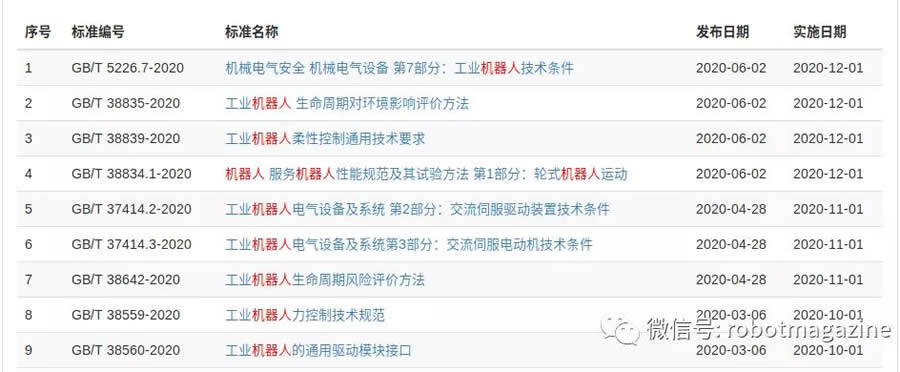 6月2日,4項與機器人相關的新增推薦標準發布,這4項標準均從2021年1月1日開始實施。