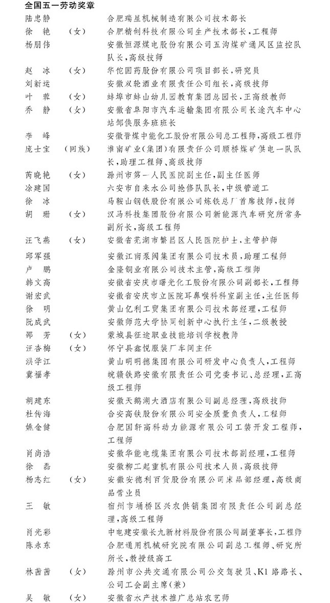 當前位置:首頁 > 最新政策 > 五一 > 2021年安徽省全國五一勞動獎章獲得者名單