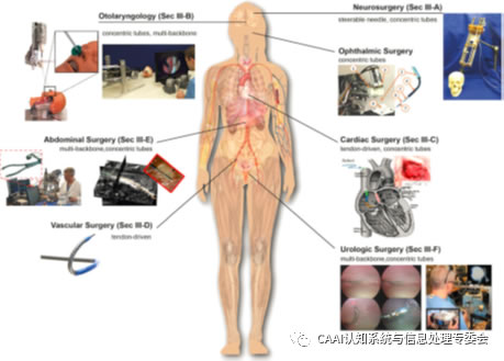 Choset[2]總結(jié)了連續(xù)體機器人應(yīng)用于外科手術(shù)的重要研究。作者調(diào)查了醫(yī)學(xué)應(yīng)用中連續(xù)機器人研究的核心技術(shù),包括特定醫(yī)療問題的設(shè)計、建模、控制、傳感和應(yīng)用方面的實質(zhì)性進展。同時,概述了在臨床方面商業(yè)化或相對較先進的手術(shù)系統(tǒng)。作者介紹了兩個已經(jīng)獲得FDA批準的連續(xù)體機器人應(yīng)用:遠程操作的連續(xù)機器人系統(tǒng)(HansenMedical Inc.和StereotaxisInc.)和超冗余系統(tǒng)(Medrobotics Inc.)。連續(xù)體因為可提供侵入性較小的通路和操作,將越來越有利于外科醫(yī)生和患者。
