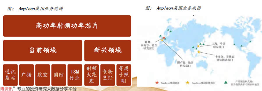 Ampleon集團(tuán)原為著名半導(dǎo)體企業(yè)NXP的射頻功率部門,在射頻功率芯片行業(yè)擁有超過 50年的運(yùn)營(yíng)經(jīng)驗(yàn),后經(jīng)剝離成立公司并由建廣資產(chǎn)成功競(jìng)標(biāo)。根據(jù)研究機(jī)構(gòu)ABI Research 的統(tǒng)計(jì),2016年Ampleon集團(tuán)在射頻功率半導(dǎo)體行業(yè)的市場(chǎng)占有率為19.6%,排名D二。 公司的射頻功率芯片主要供應(yīng)各大通訊基站設(shè)備制造商。Ampleon的經(jīng)營(yíng)模式介于IDM模式 與Fabless模式之間,其業(yè)務(wù)涵蓋射頻功率芯片的設(shè)計(jì)、封裝測(cè)試以及終的銷售環(huán)節(jié),但 不包括晶圓采購(gòu)、芯片制造及測(cè)試等中間環(huán)節(jié)。公司擁有Si LDMOS技術(shù)以及一代G端 半導(dǎo)體射頻氮化鎵技術(shù),GaN業(yè)務(wù)主要通過由晶圓廠商(UMS)代工的方式實(shí)現(xiàn)產(chǎn)品出貨。 公司基站芯片業(yè)務(wù)占業(yè)務(wù)總收入的88%。