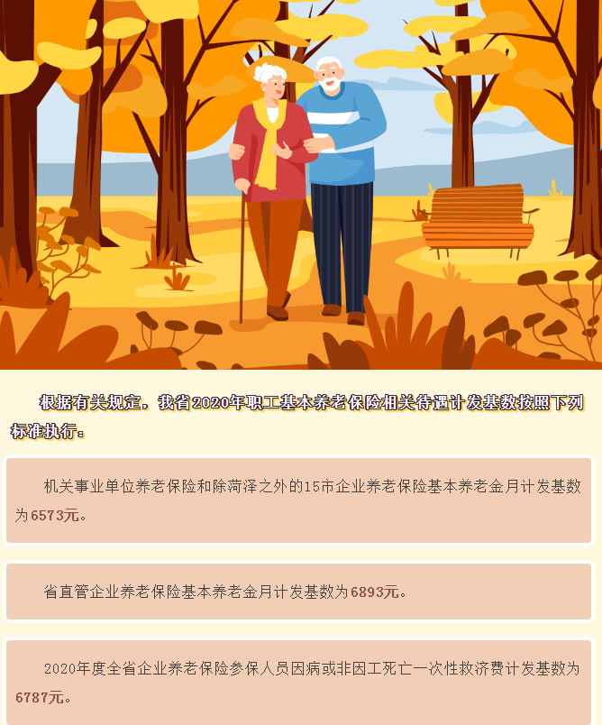 機關事業單位養老保險和除菏澤之外的15市企業養老保險基本養老金月計發基數為6573元。